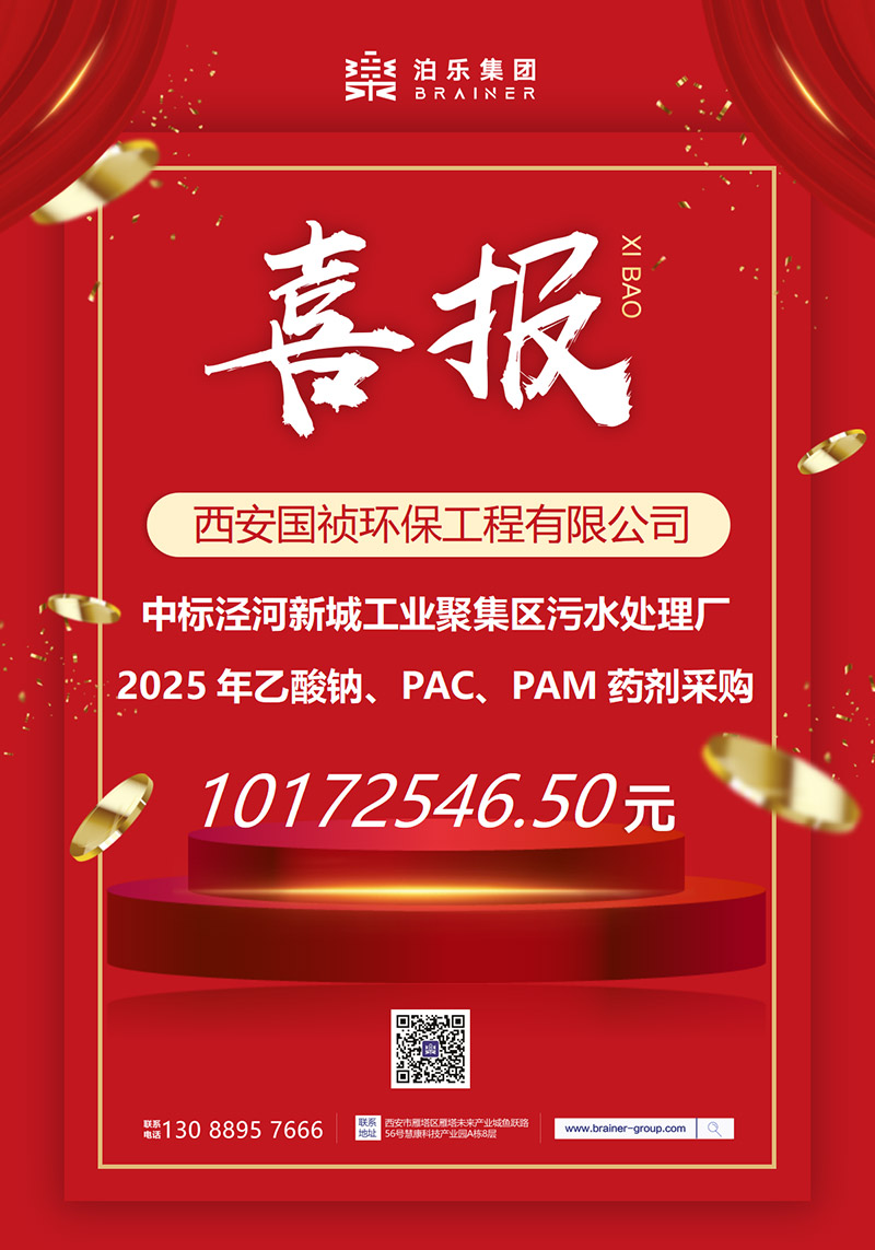 喜报——热烈庆祝我司中标泾河新城工业聚集区污水处理厂 2025 年乙酸钠、PAC、PAM药剂采购